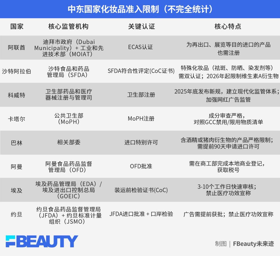 这些体系不仅标准不同,而且执行严格,涉及成分限制、标签规范、广告表达等多个维度。这意味着,中东是多个规则体系并存的区域。品牌如果没有足够的合规能力,很难真正落地。从这个角度看,中东首先是一个“规则市场”。